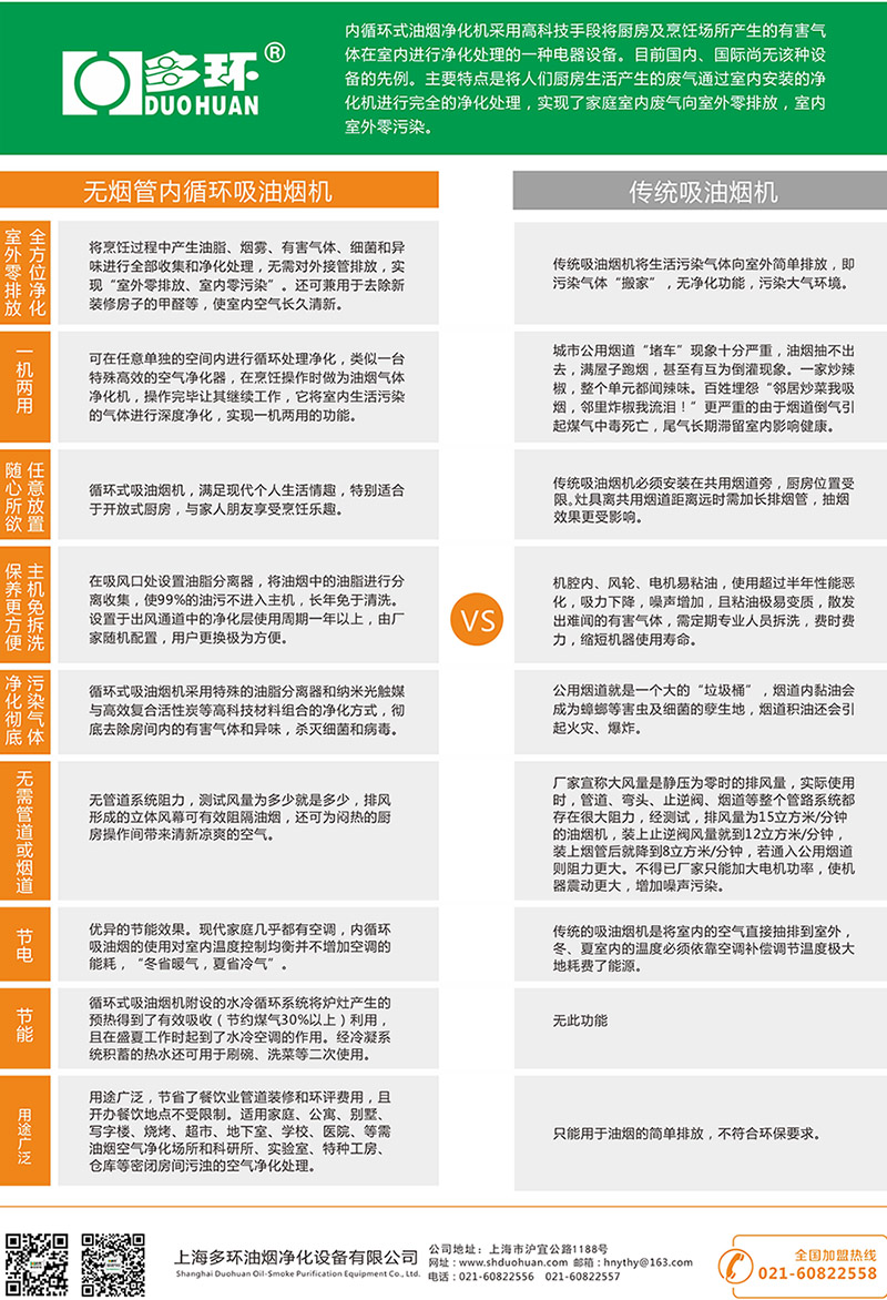 多環公司小型無煙管內循環油煙機與傳統吸油煙機的比較